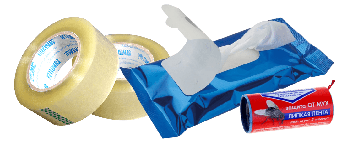 Клей для виготовлення клейких стрічок, скотчу повинен мати гарну адгезію і стабільність до гладких еластичним поверхонь, як правило, до поліпропілену.