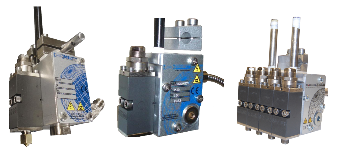 Клейові головки до Nordson, Melton, Robatech, Barberan, Dynatec, Meler, Preo застосовуються для нанесення клеїв розплавів і PUR-клеїв на різні матеріали. Дозування відбувається за рахунок модулів (дозаторів), кількість яких в різних варіаціях може бути один і більше.